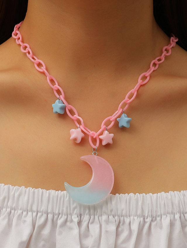 Personality Star Moon Resin Chain Necklace Creative Personality Trend Long Acrylic Pendant
